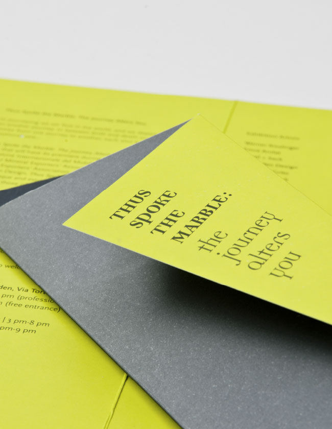 oluşturacak eserler tasarlamaları istendi. Sanatçılar hayat yolculuğunda yaşadığımız duygusal süreçleri tasarımlarıyla görselleştirdi. Mermerin “hikâye anlatıcı” rolünü üstlendiği serginin küratörlüğünü, kurumsal kimlik ve mekân tasarımını