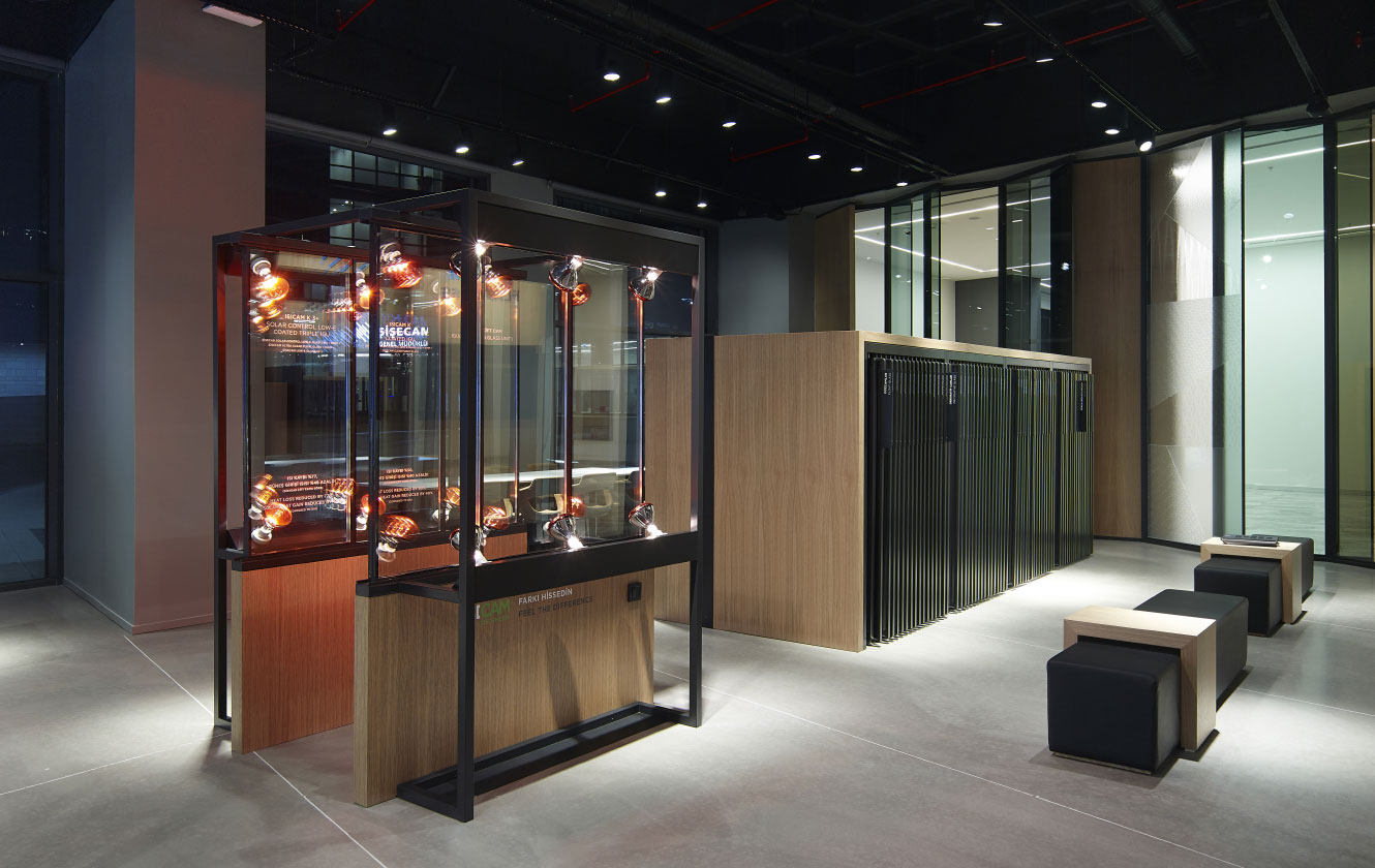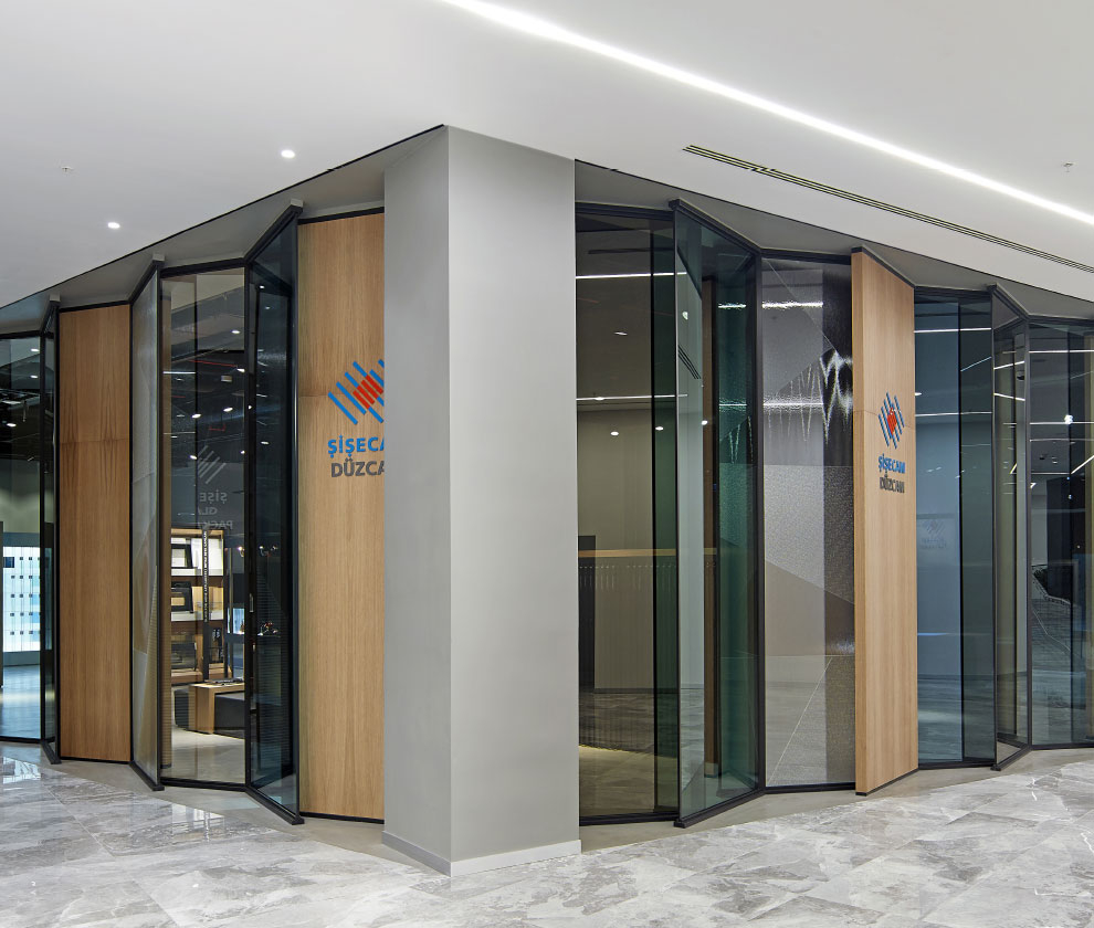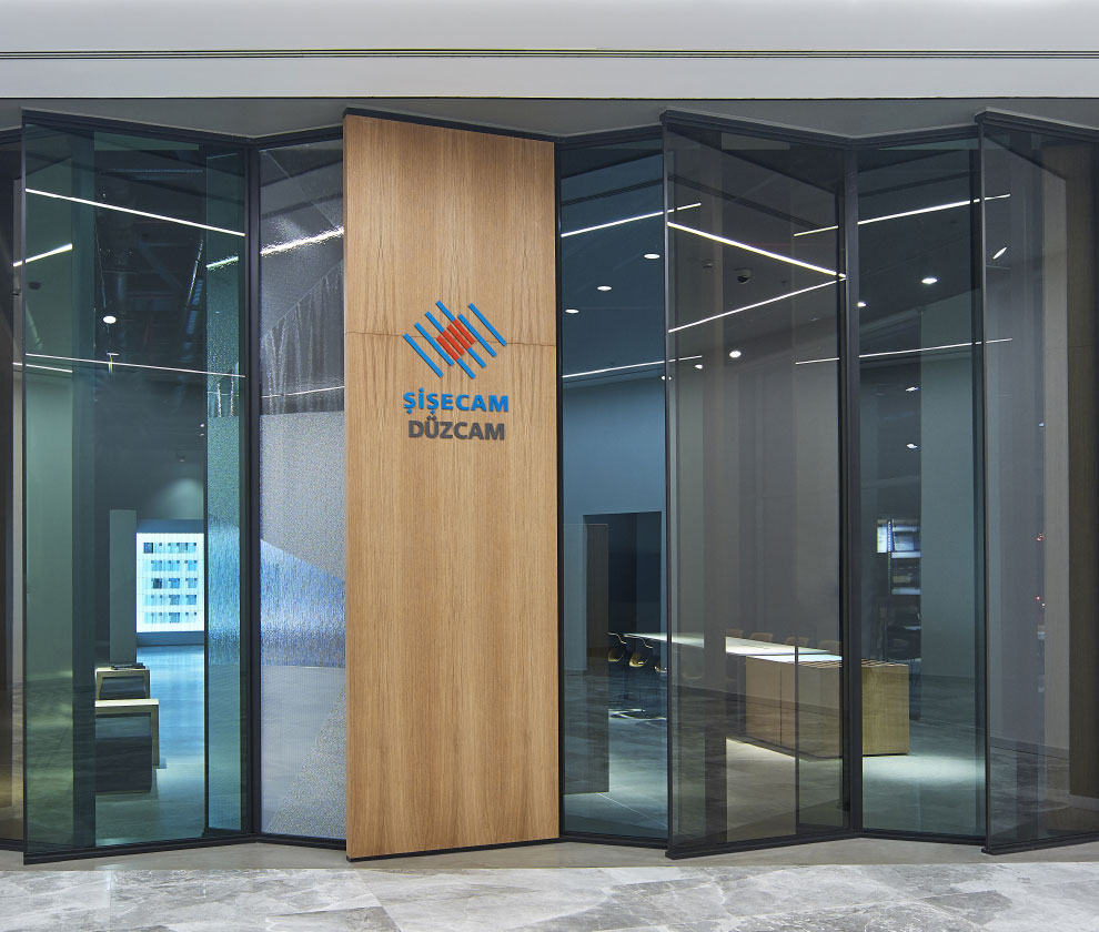 Sisecam Flat Glass Showroom project, designed and executed by Demirden, leads the industry through its strong,