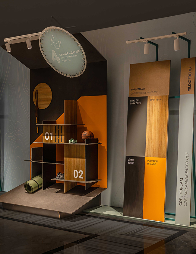 Yıldız Entegre’s new surfaces were promoted at a launch exhibition, with demirden | ilio taking on the design and implementation at the “Together to the Future” event held in Cyprus. With the new products being displayed on wide surfaces, the inspiring design using abstract spatial sections and the journey that was woven into the living spaces were conceived as an exhibition corridor in the foyer where the event was taking place.