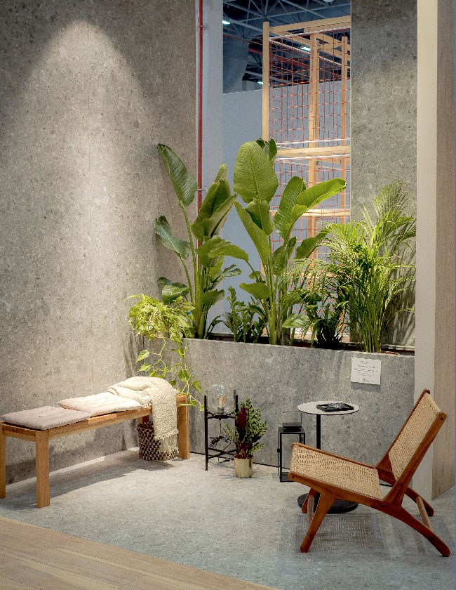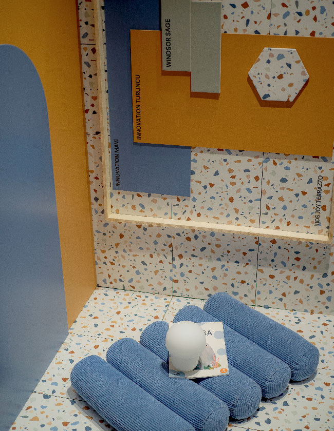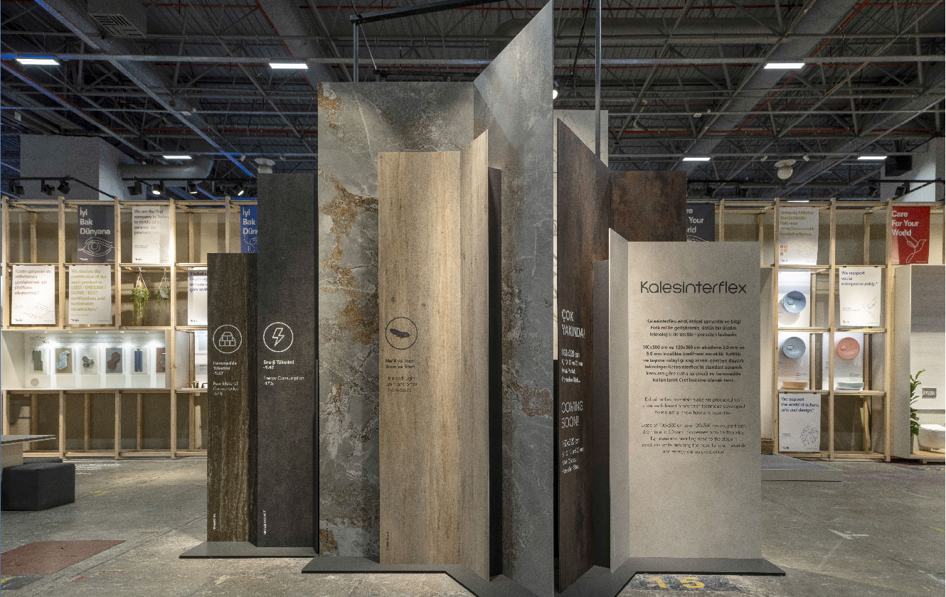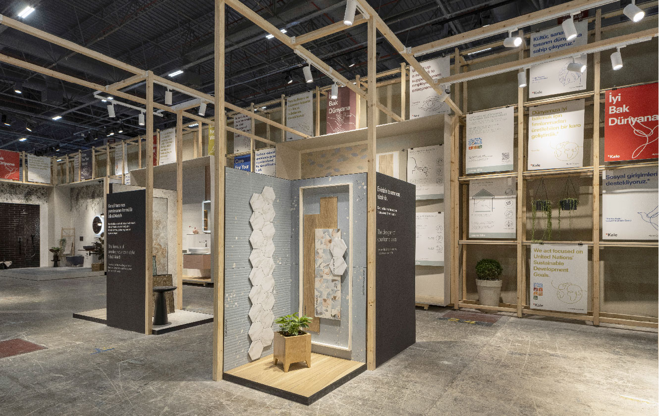 Kale markasının “İyi Bak Dünyana” konumlandırmasının akılcı ve yenilikçi bir platformda aktarıldığı sergileme tasarımı ikinci yılında da sürdürülebilir üretim ve tüketim ilişkisine katkı sağlama sorumluluğunu hatırlatıyor. %80 oranında daha az zemin malzemesinin kullanıldığı, %91’i geri dönüştürülebilir malzemelerden oluşan yapı, ziyaretçilere güncel bir deneyim sunuyor.
