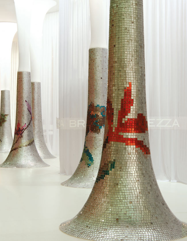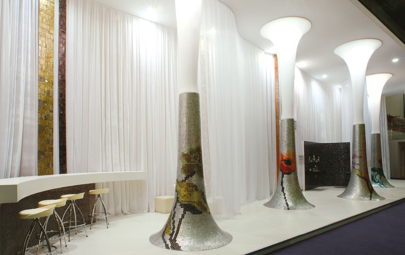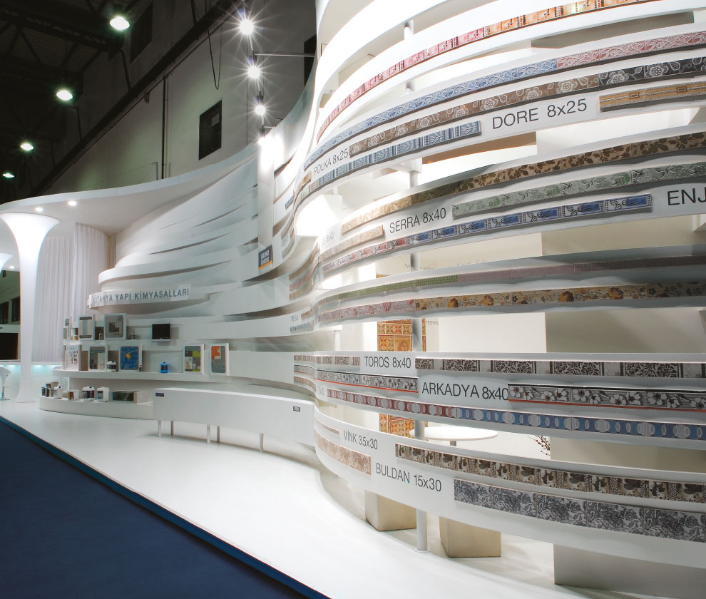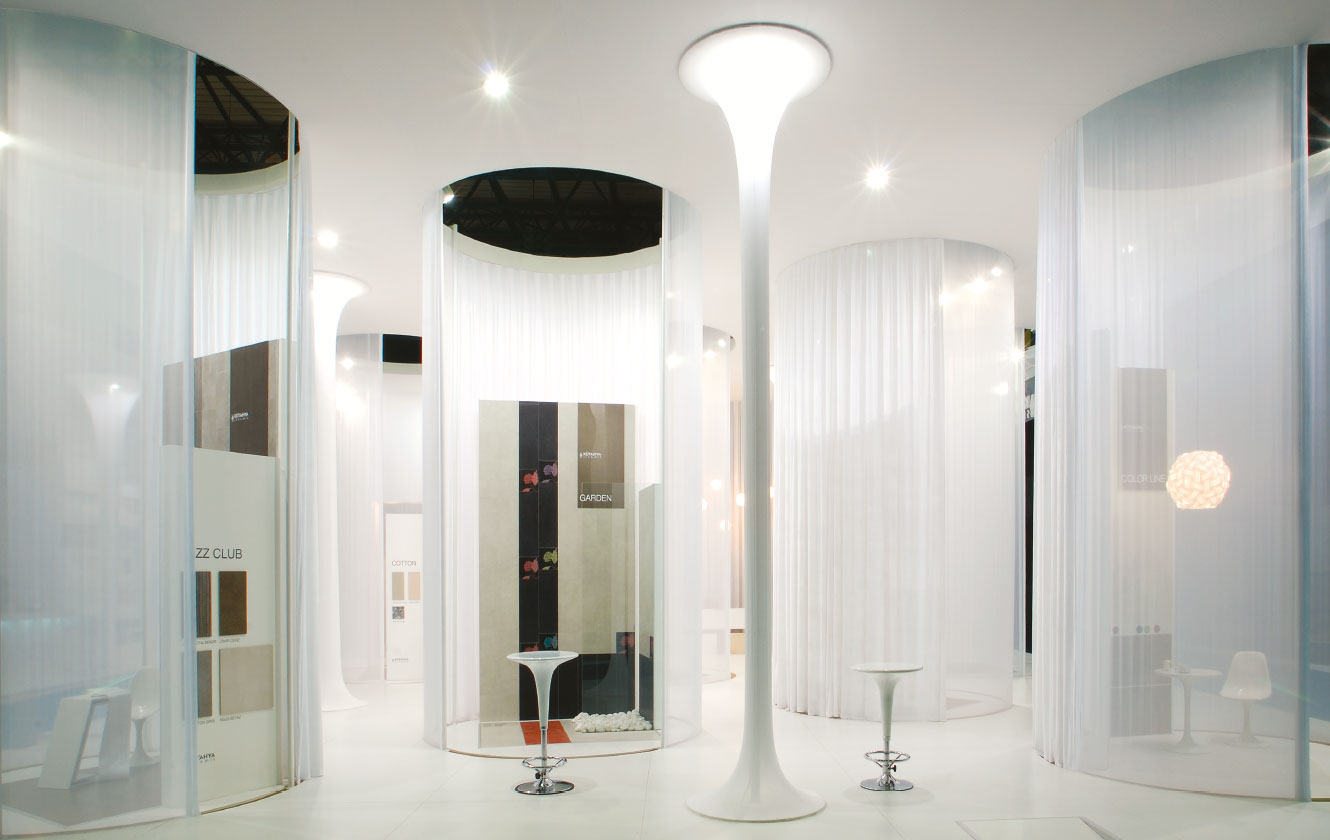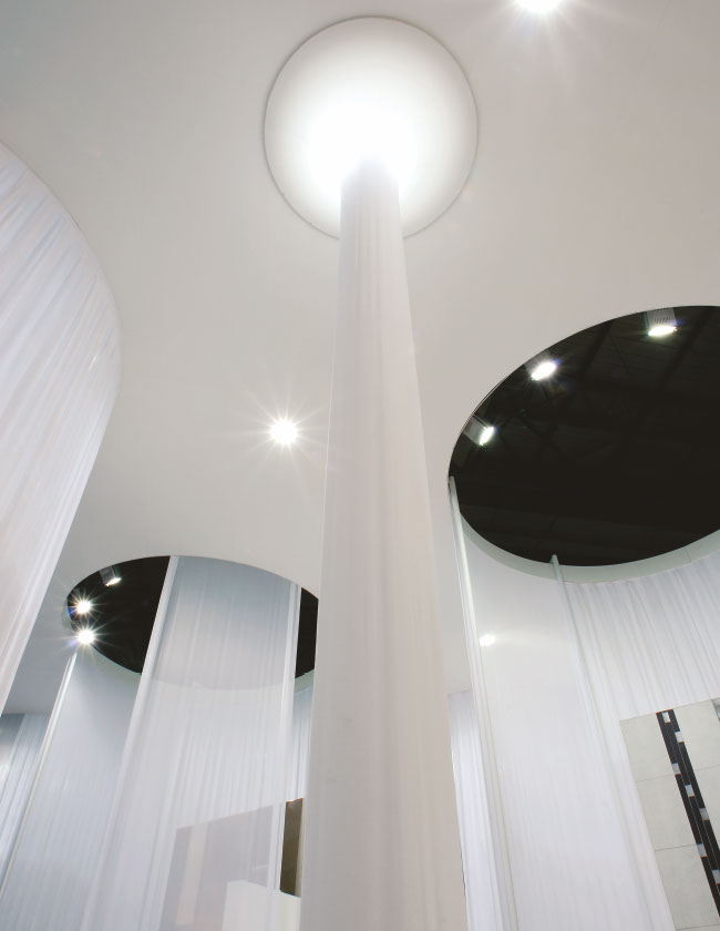 Standın, yüksek ve görkemli ana yapısı içerisindeki silindirik mekanlar galeri fonksiyonunu üstleniyor. 5.5 metre yüksekliğinden yere inen beyaz kadife ve tüllerle özelleşen ürün sergileme mekanları ve alışılmadık geometrideki kolonlar ziyaretçileri geçmişten mi, gelecekten mi olduğu anlaşılmayan bilinmeyen bir keşfin yolculuğuna davet ediyor.