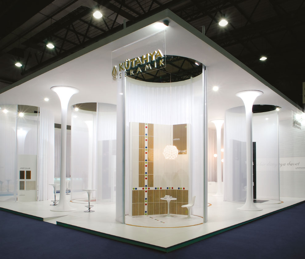 özellikler romantizm ve görkem ile birleştirilerek stand konseptini oluşturuyor. Gelen ziyaretçilerin dış ortamdan