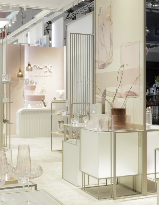 Nude’un modern bir yaşam için tasarlanmış yalın cam ürünleri, "simple is beautiful" ilkesinin ışığında demirden | ilio‘nun zarif ve büyülü konseptiyle Ambiente’de sergilendi. Nude markasının estetik zenginliğini ve tasarım kalitesini vurgulayan mimari yolculuğu, Frankfurt'taki dünyanın en büyük cam ev eşyaları fuarında ziyaretçilerle buluştu.