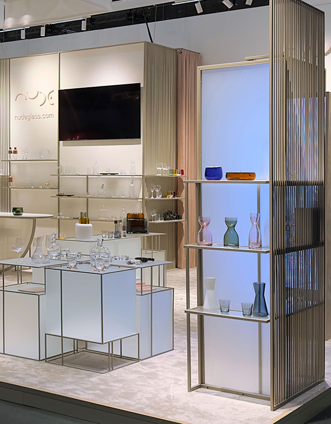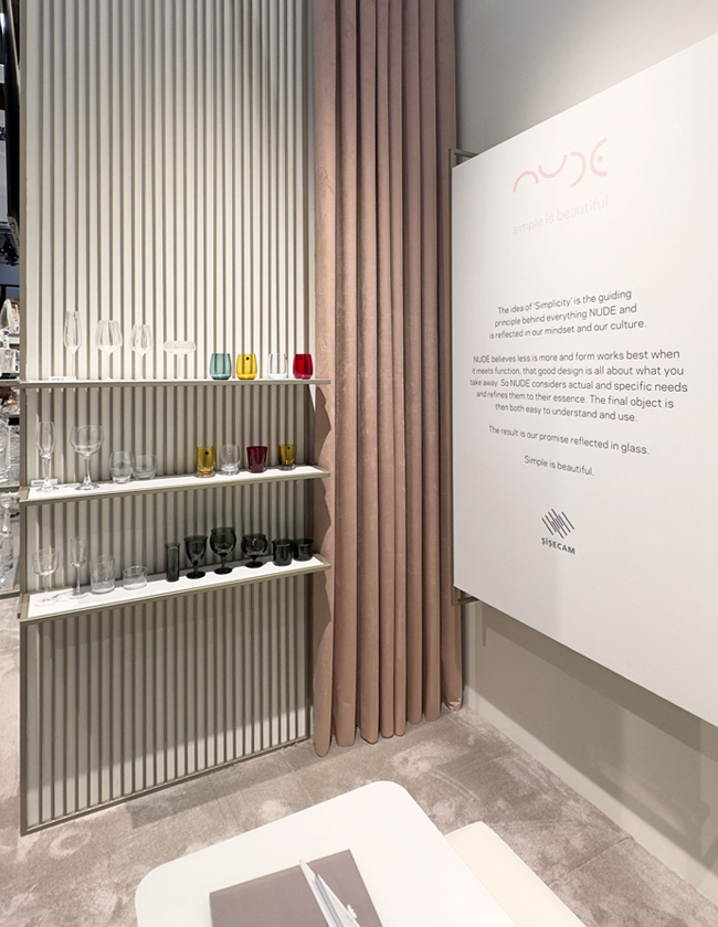 Şişecam’ın global tasarım markası olan Nude için “simple is beautiful” mottosunu şık ve büyülü bir dille sunan demirden | ilio’nun tasarladığı yeni konsepti, Frankfurt’ta düzenlenen en büyük ev eşyası fuarı olan Ambiente’de ziyaretçilerle buluştu.