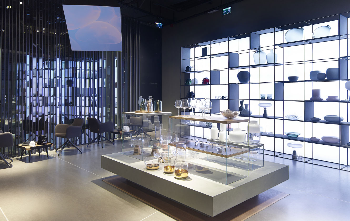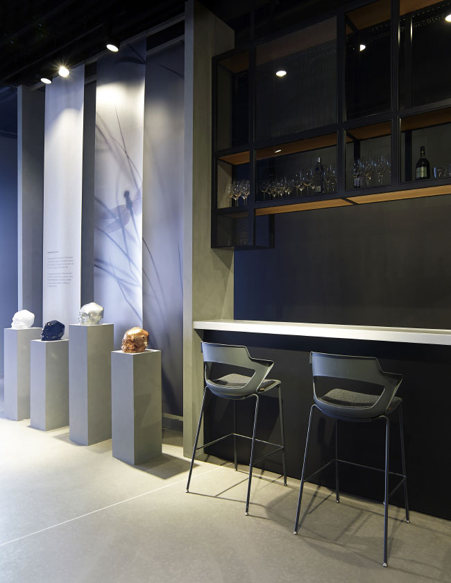 iç mekan mobilyası görevi gören merkezi sergileme birimleri, ferah bir mekan kurgusunun yapı taşlarından biri olarak