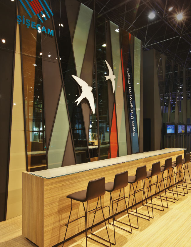 “Düşüncelerin buluşması” adlı stand ile Şişecam Trakya Cam’ın yüksek üretim gücü ve ürün çeşitliliğinin, çevreci ve enerji verimliliği gibi marka değerleriyle buluşturulması amaçlanmıştır. Doğanın malzeme ile olan yakın ilişkisi stand tasarımına ilham kaynağı olmuştur.