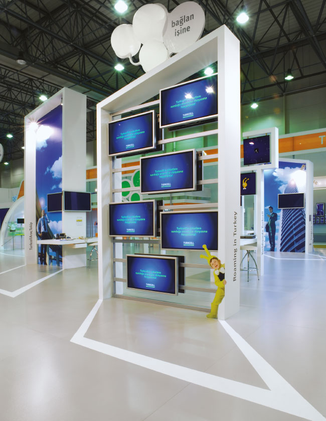 Proje: Turkcell CeBITYıl: 2006Yer: İstanbulAlan: 1063 m²Kapsam: Sergileme Tasarımı, Grafik Tasarım, Uygulama