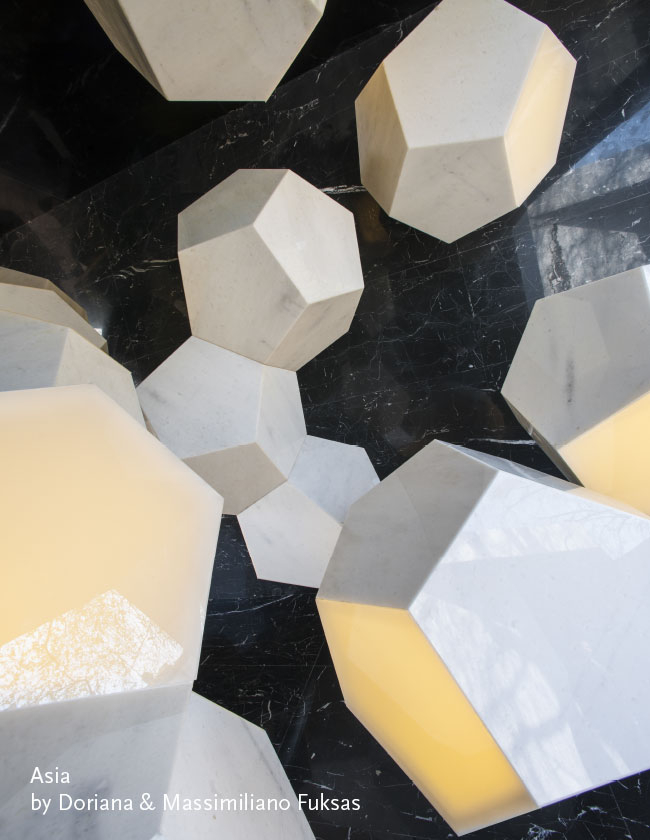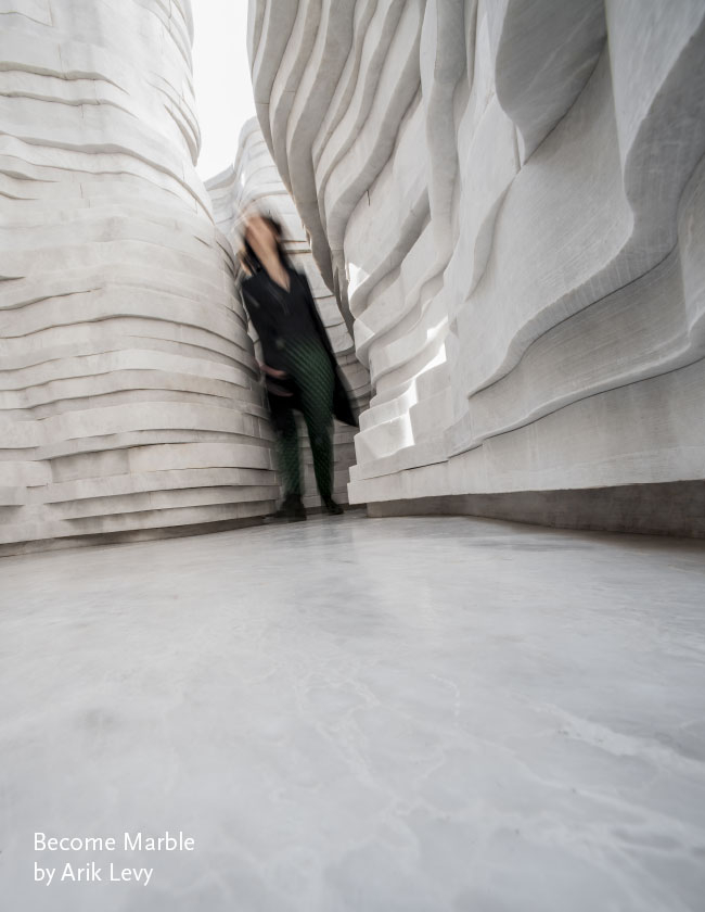 Farklı disiplinlerden gelen 6 tasarımcı ve mimarın, 4 bin yıllık bir geleneğin parçası “mermer”i konu edindiği çalışmalar, Anadolu kültürünü, tarihini ve mitleri çağdaş tasarımlarla buluşturarak zıtlıkların bütünleyicisi oluyor. Sergide mermeri, mimari açıdan, Doriana - Massimiliano Fuksas (İtalya), Melkan Gürsel - Murat Tabanlıoğlu (Türkiye), Alişan Çırakoğlu (Türkiye), endüstriyel tasarım odaklı Mathieu Lehanneur (Fransa), moda gözüyle Dice Kayek (Türkiye) ve sanatçı-tasarımcı Arik Levy (Fransa)